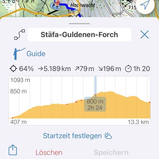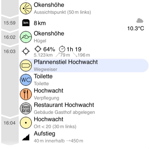 Der Guide berechnet die Wanderzeit, bis ein solcher Ort erreicht ist. Was angezeigt wird, bestimmen Sie.