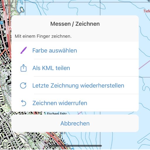Einfach Strecken und Flächen zeichnen und messen. Mit dem Finger Strecke oder Fläche auf die Karte zeichnen.