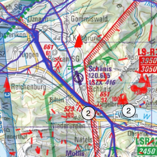 ICAO-Karten, Segelflugkarten, Hindernisse, Landeplätze, Schutzgebiete.