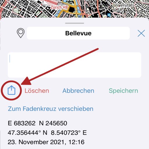 Teilen und Exportieren von Orten, Tracks und Routen.
