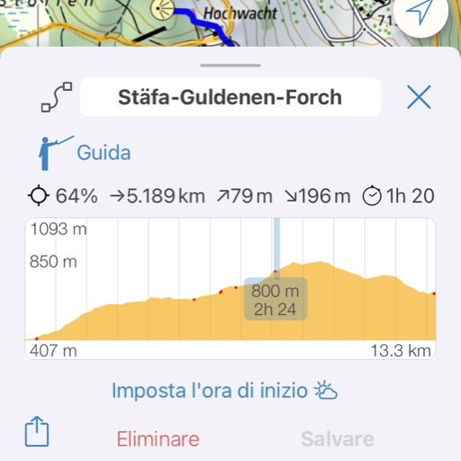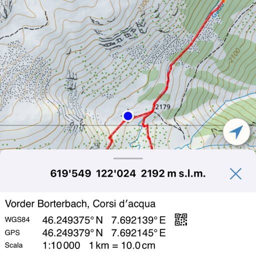 Swiss Pro Map è adatto alla registrazione di tracks. Si possono creare e modificare percorsi propri. Tutti i percorsi, le tracks e i luoghi segnati possono essere esportati e condivisi.
