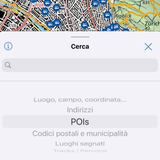 Cerchi nomi di luoghi e campi, comuni, POI, coordinate indirizzi e percorsi di SwissMobility. Tutto questo offline, ovviamente.