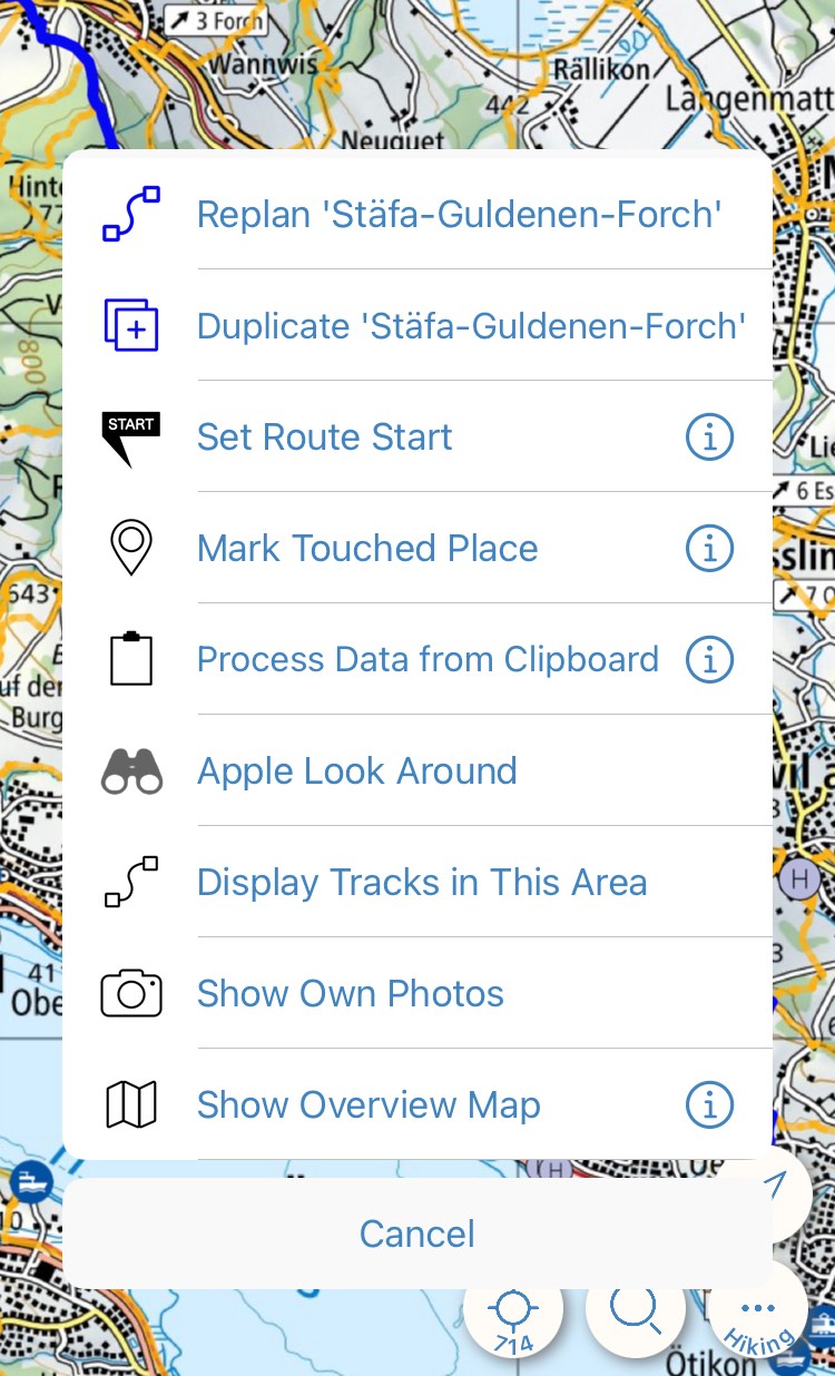 While you are on the trail, Swiss Pro Map will notify you on your iPhone – and optionally on your Apple Watch – where to turn next so that you stay on your route. You will also be alerted if you leave the route.