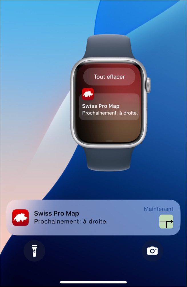 Pendant votre parcours, Swiss Pro Map vous envoie une notification sur votre iPhone – et, si vous le souhaitez, également sur votre Apple Watch – pour vous indiquer où tourner afin de rester sur votre itinéraire. Vous serez également averti si vous quittez l’itinéraire.
