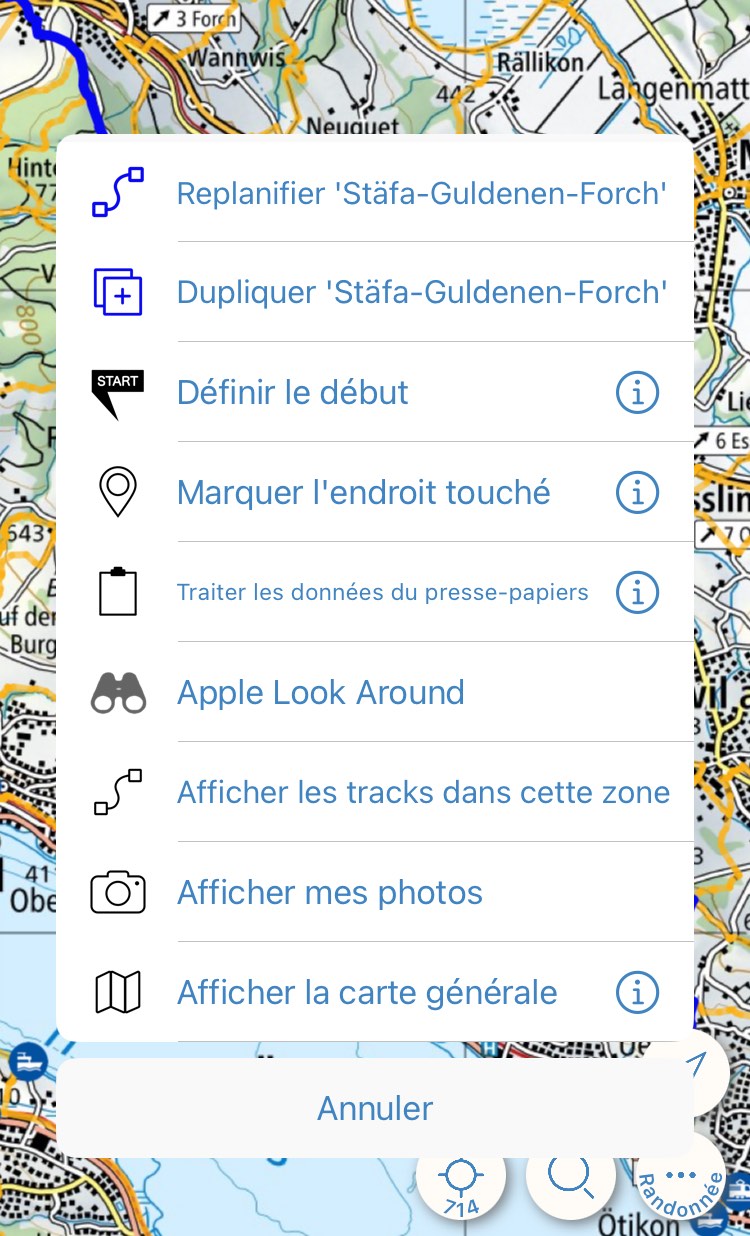 à des fonctions supplémentaires qui varient selon le contexte, appuyez un long-press (plus longtemps et avec un peu de force) sur la carte.